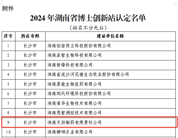 近日,湖南医药发展投资集团所属湖南天劲制药有限责任公司(以下简称“天劲制药”)获批2024年湖南省博士创新工作站。