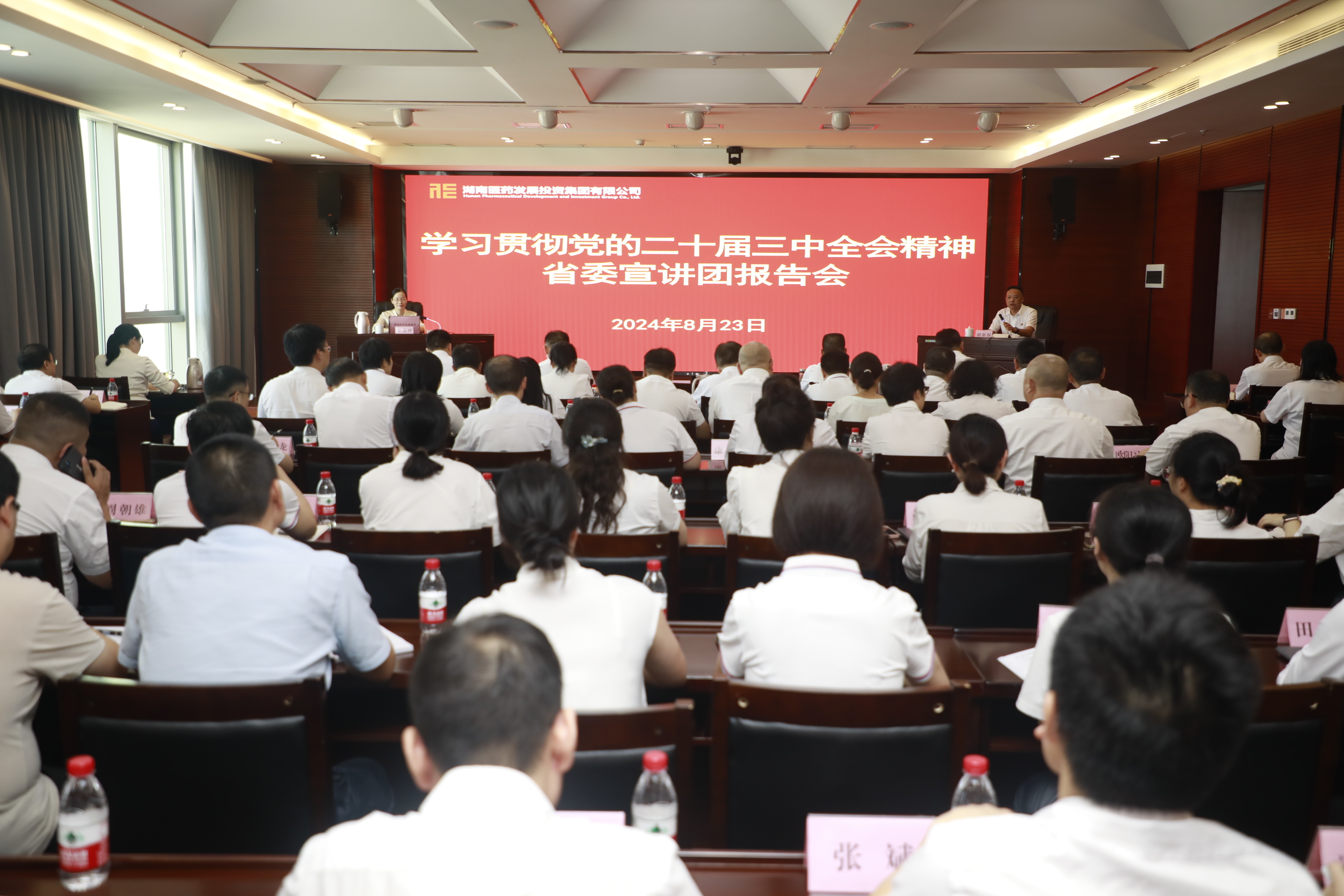 根据统一部署安排,8月23日下午,学习贯彻党的二十届三中全会精神省委宣讲团报告会在湖南医药发展投资集团举行。省委宣讲团成员、省委党校党史党建教研部主任、教授李美玲作宣讲报告。集团党委书记、董事长胡新保主持报告会并讲话。