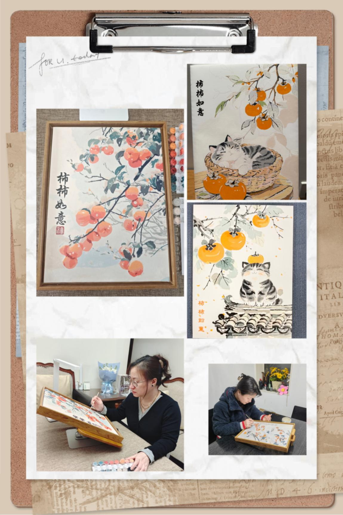 不仅是游园赏景,此次还组织大家开展了数字油画DIY活动。大家作品上活泼可爱的小花猫、高悬枝头的大红柿子,寄托了女职工们对生活的美好向往。既展现了积极向上的精神面貌,也让大家体验了一把绘画涂鸦的乐趣,成就感油然而生。