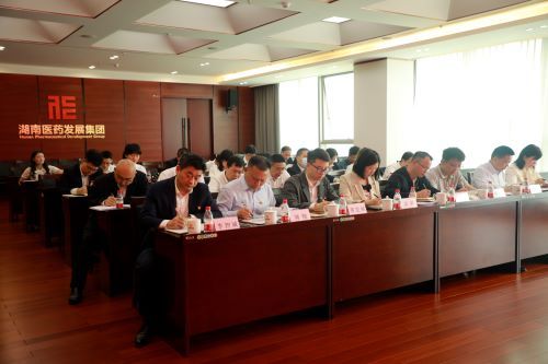 2023年4月13日上午,湖南医药发展集团党委召开学习贯彻习近平新时代中国特色社会主义思想主题教育动员部署会。省委主题教育第十九巡回指导组组长李舜到会指导并作重要讲话,集团党委书记、董事长胡新保主持会议并进行动员部署。省委主题教育第十九巡回指导组全体成员,集团党委副书记、副董事长、总经理苏德辉,集团党委副书记、职工董事刘晓,党委委员赵智海、李智诚、张洁、莫众出席会议。
